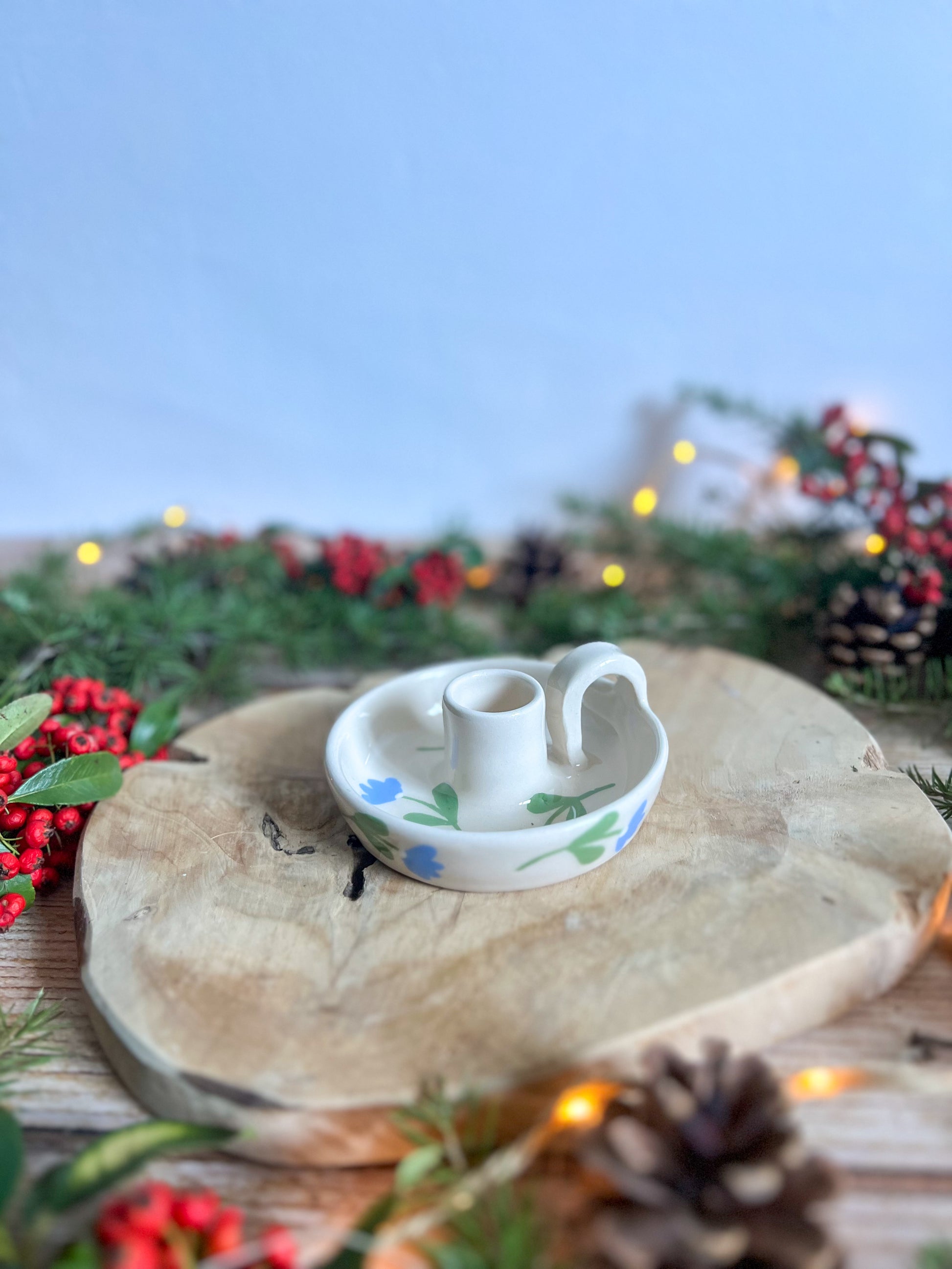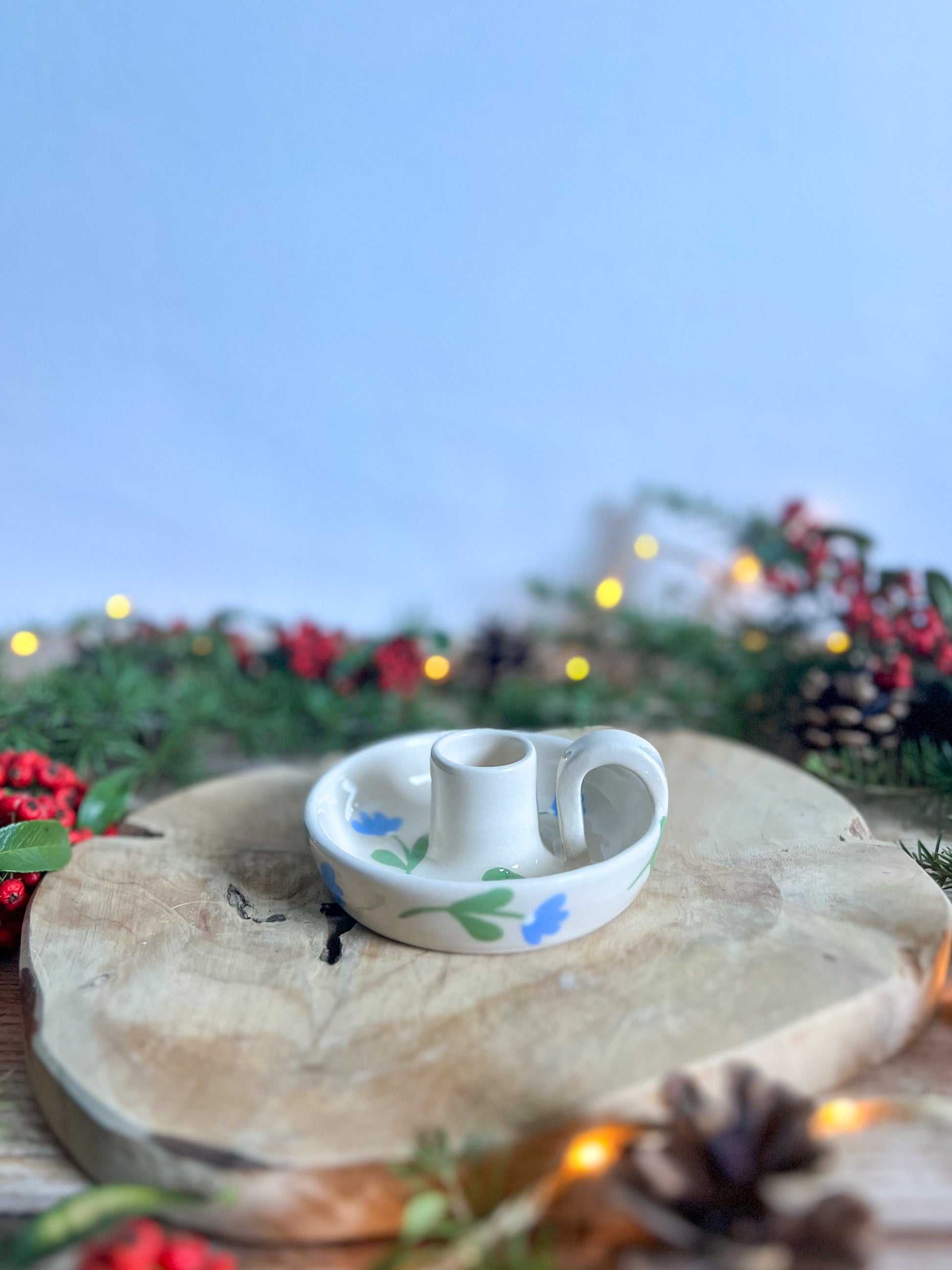 Chandelier décoré de petites fleurs, peintes à la main dans des tons doux et romantiques 🪻Convient aux bougies longues et apporte une touche chaleureuse à une table ou un coin de pièce.