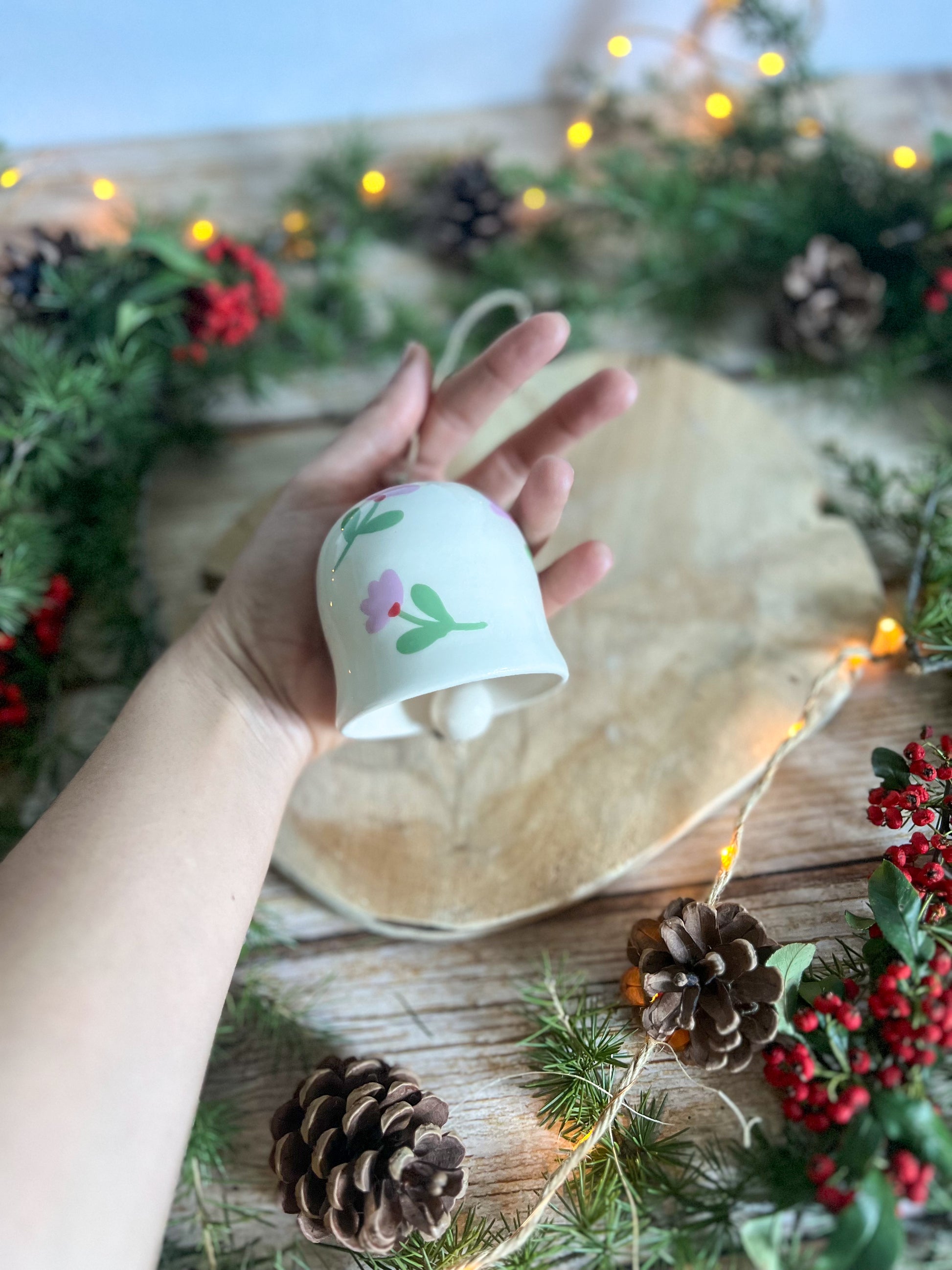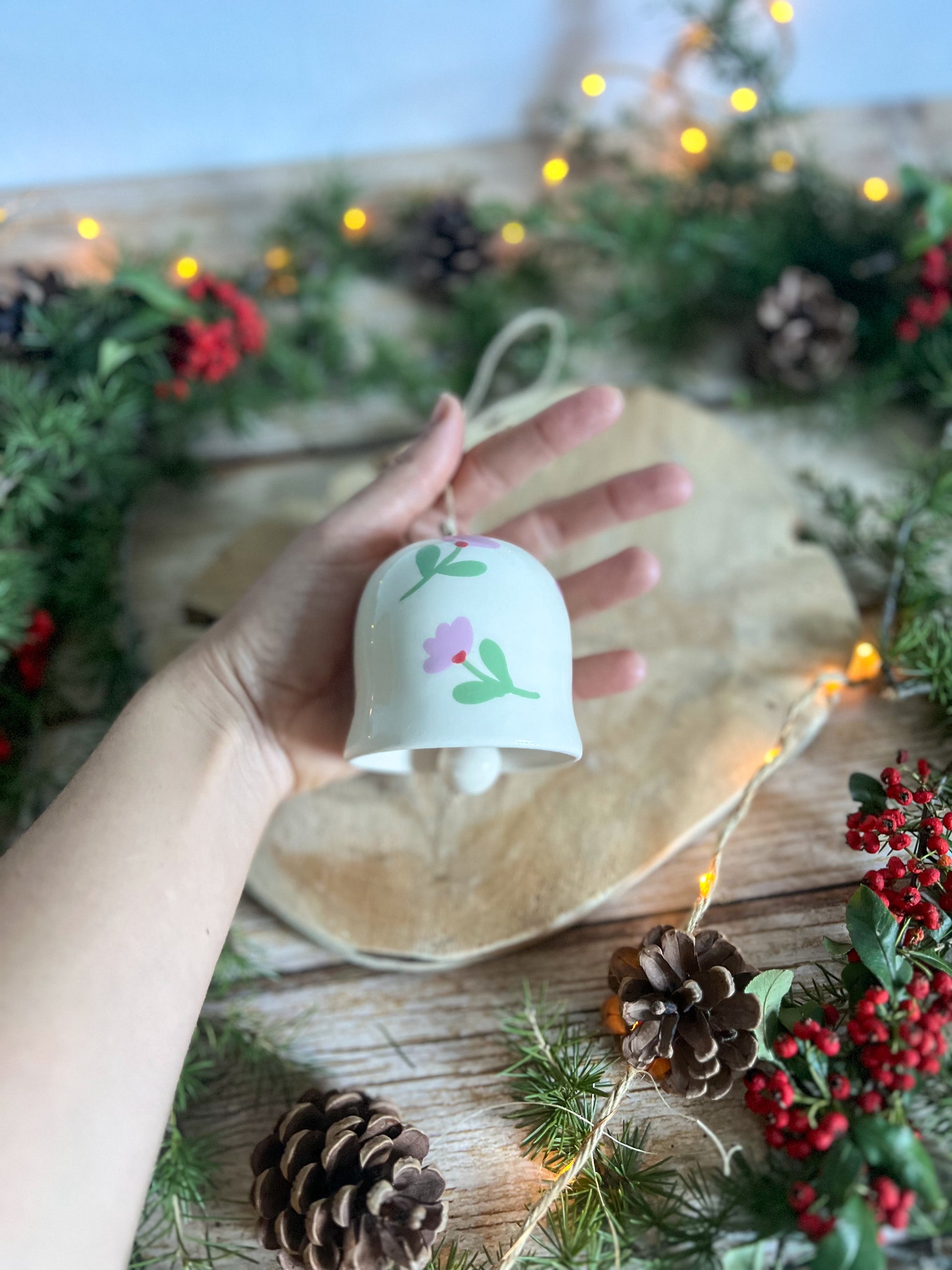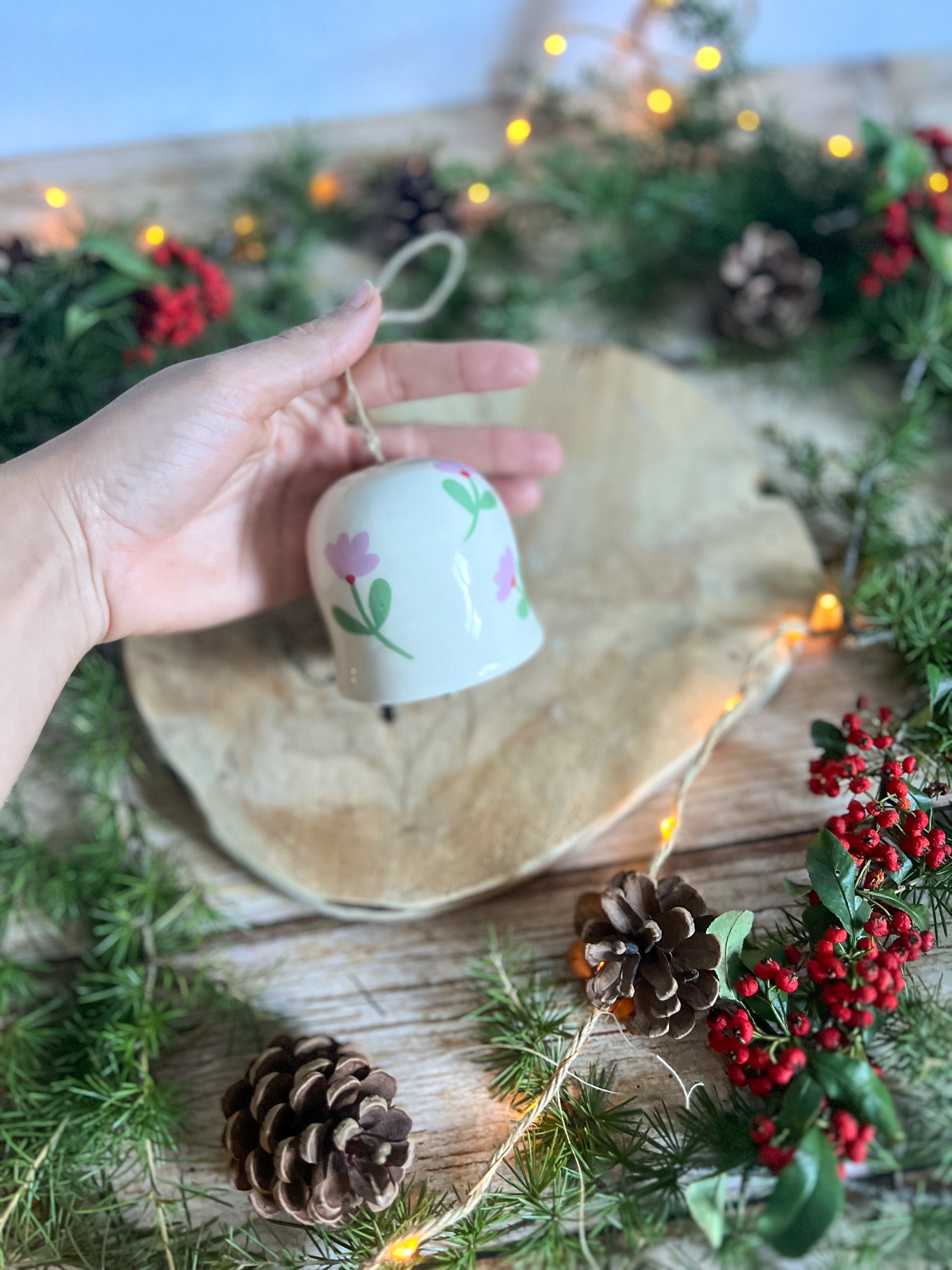 Cloche décorée de petites fleurs peintes à la main, toute douce et délicate 🌸