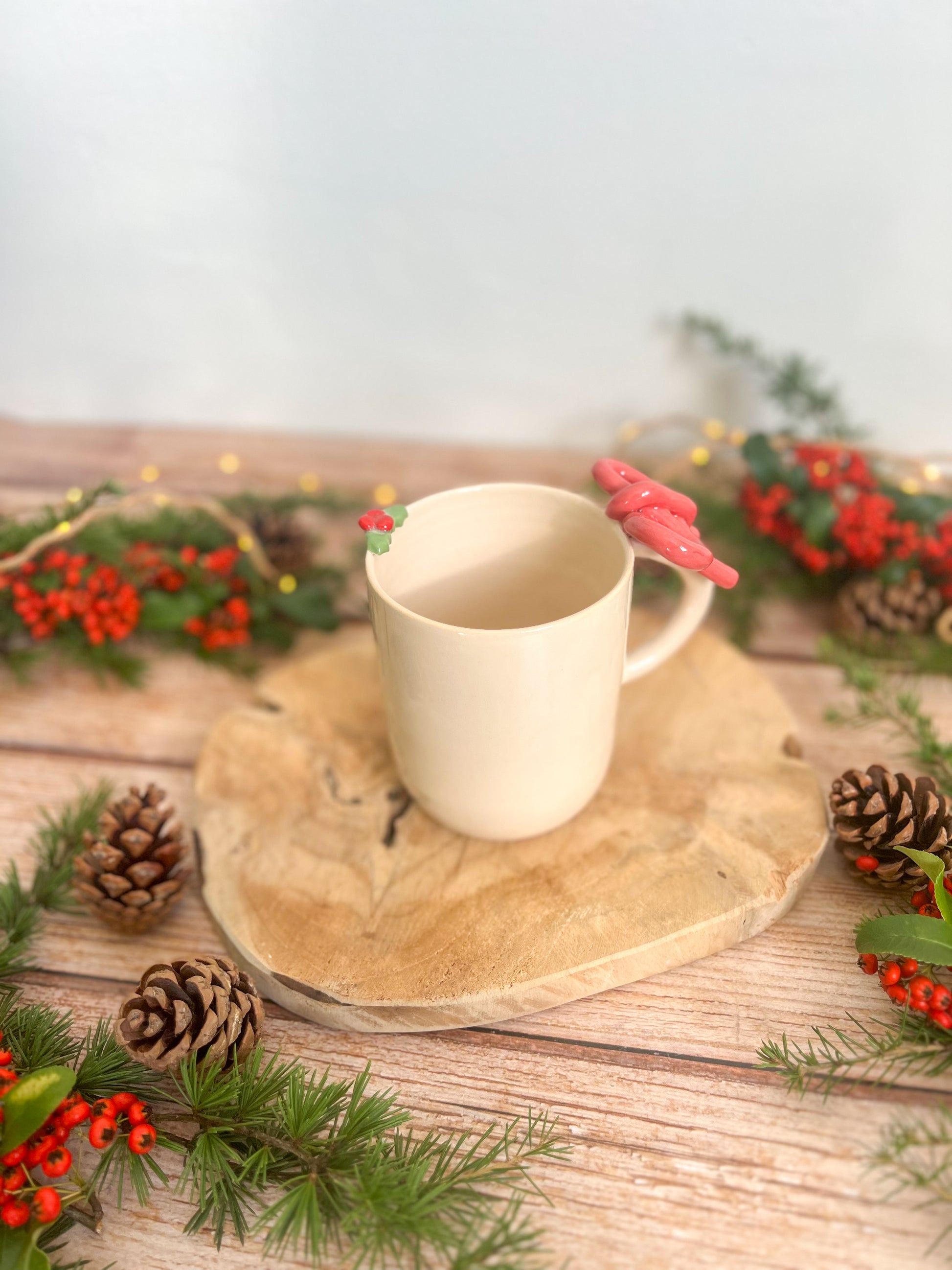 Tasse décorée d’un nœud modelé à la main sur l’anse 🎀
