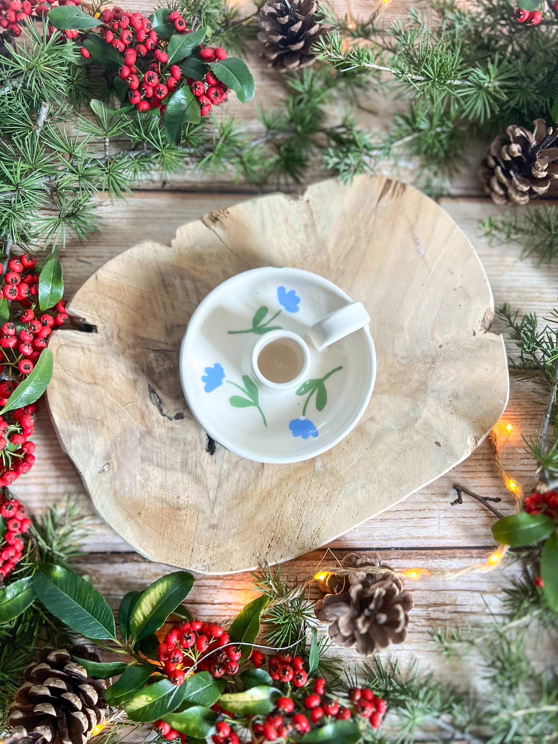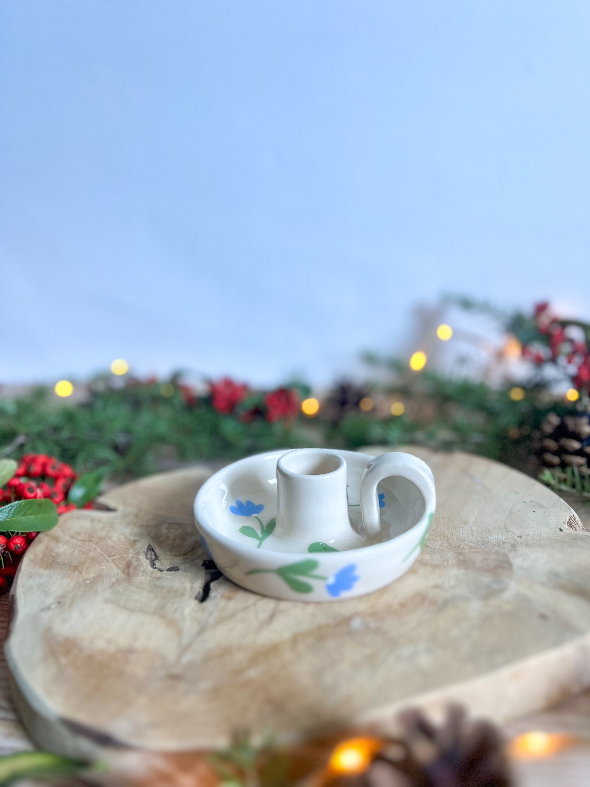 Chandelier décoré de petites fleurs, peintes à la main dans des tons doux et romantiques 🪻Convient aux bougies longues et apporte une touche chaleureuse à une table ou un coin de pièce.