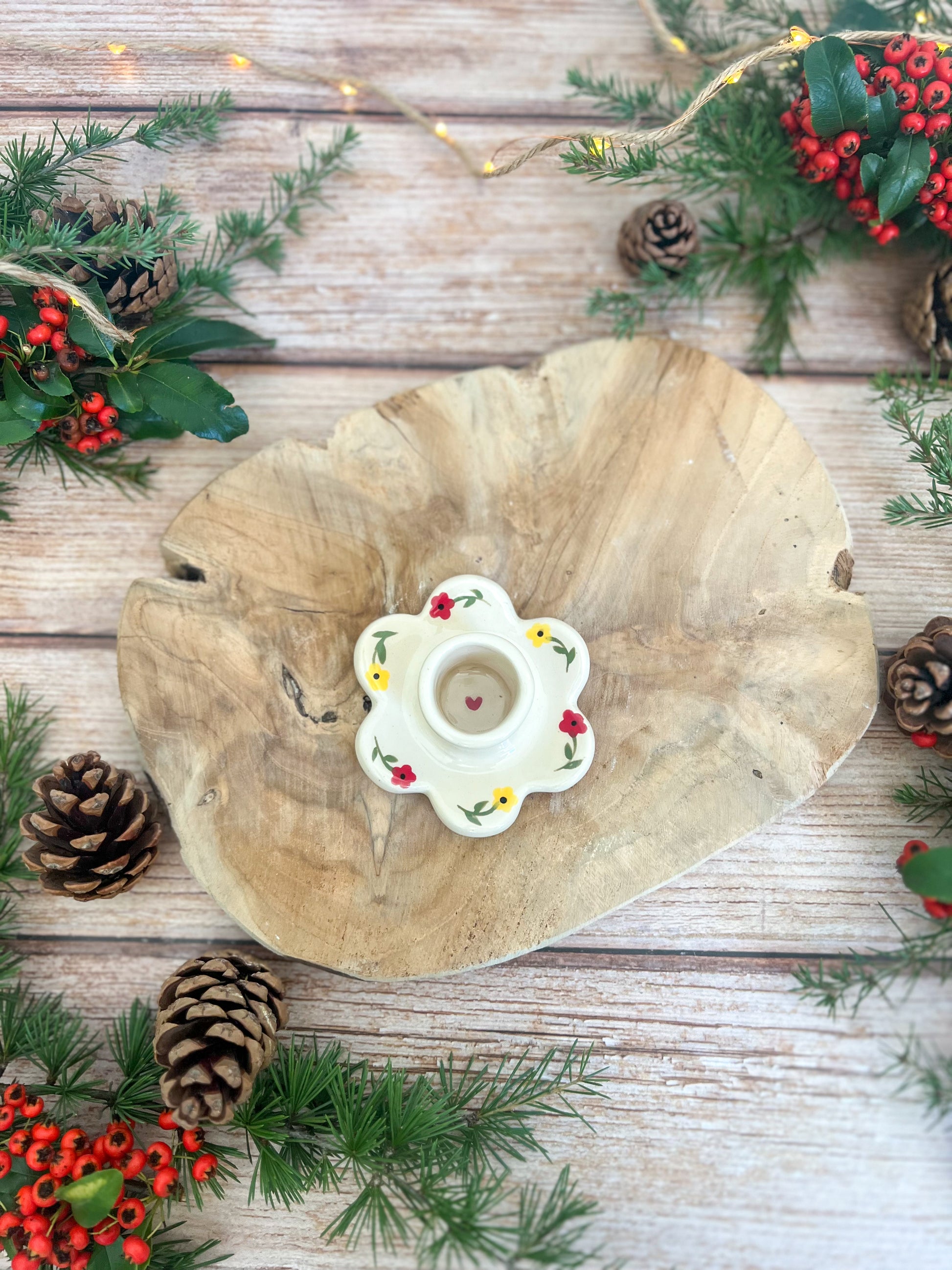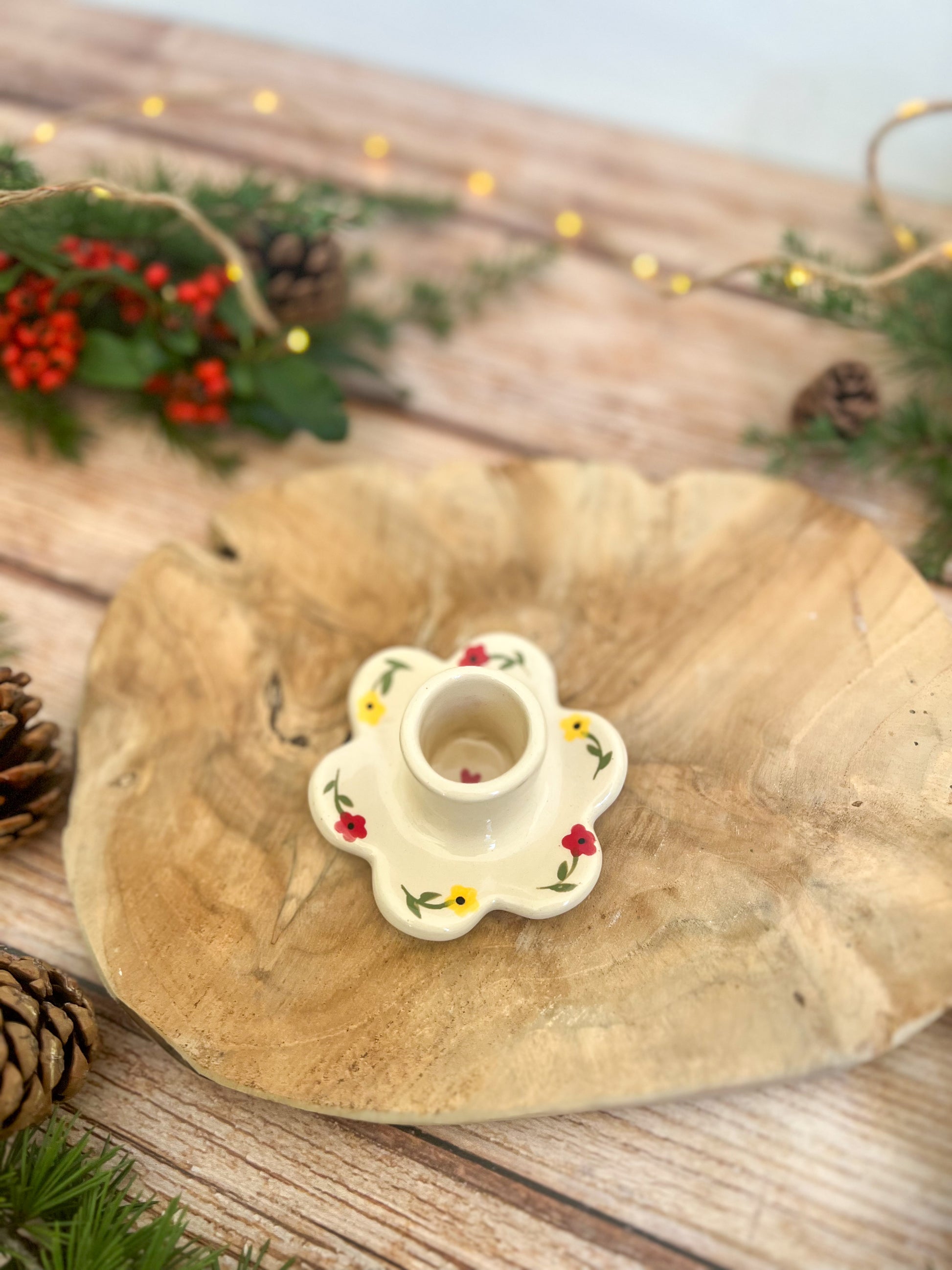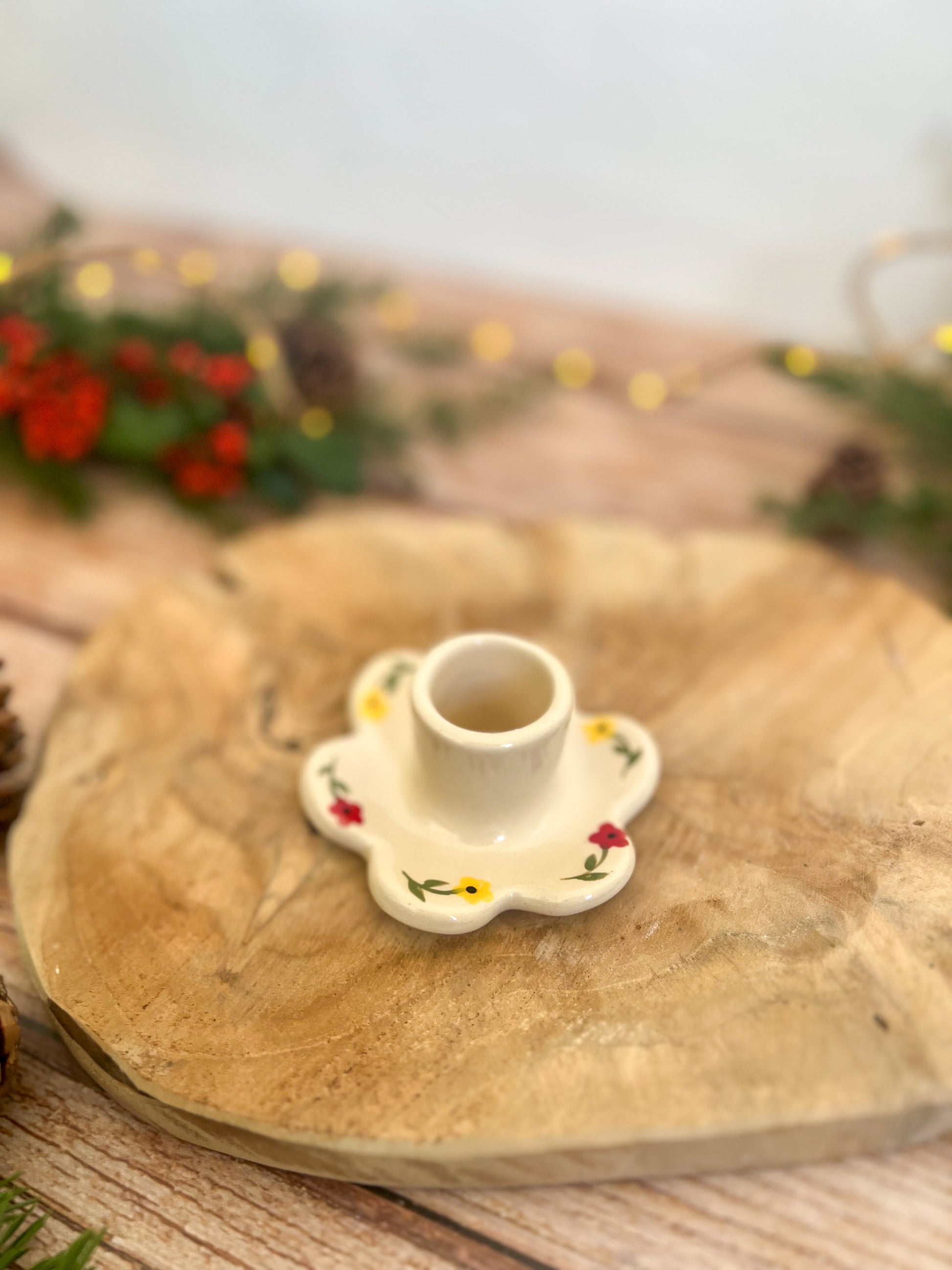 Chandelier décoré de petites fleurs, peintes à la main dans des tons doux et romantiques 🌼Convient aux bougies longues et apporte une touche chaleureuse à une table ou un coin de pièce.