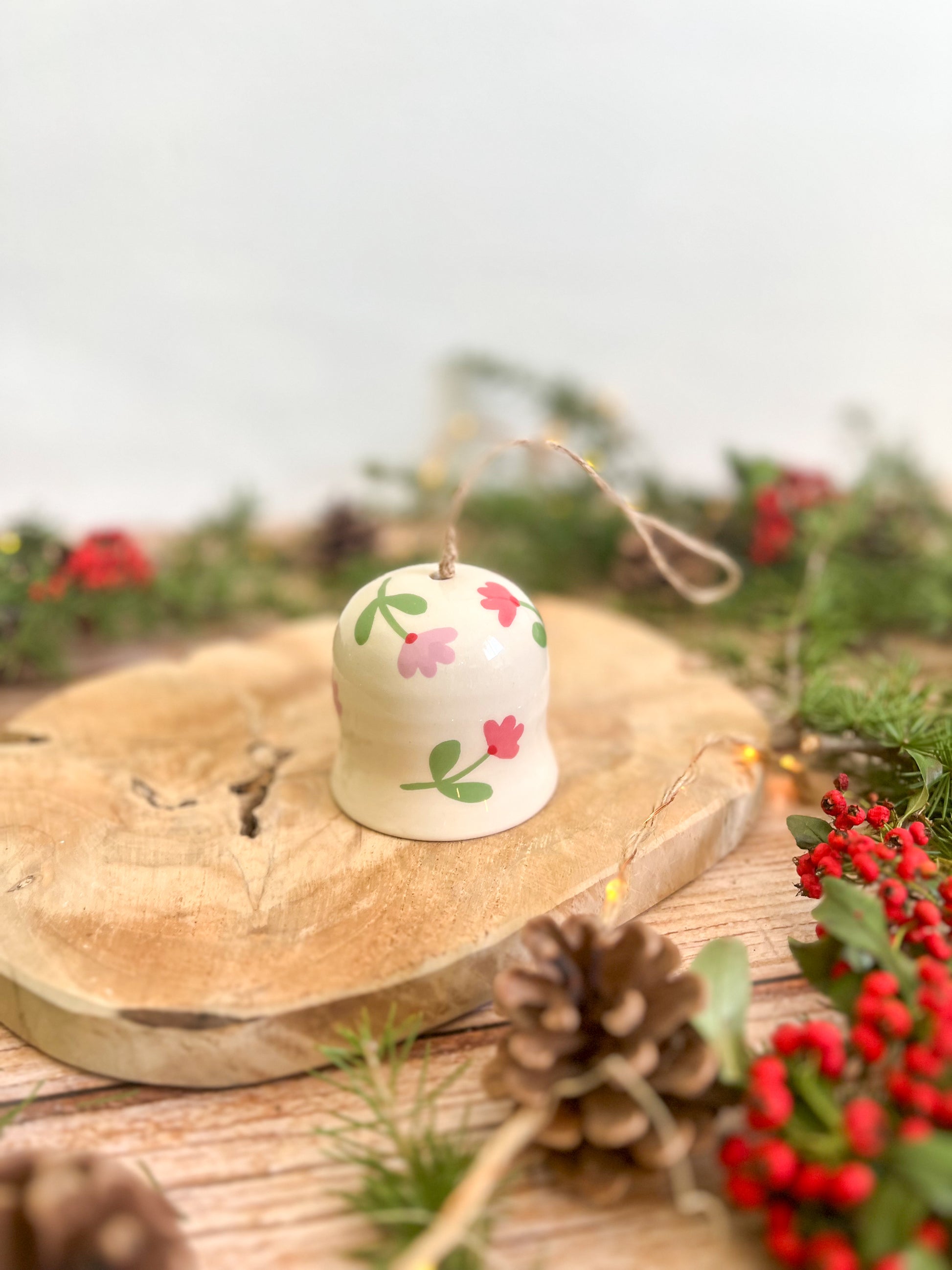 Cloche décorée de petites fleurs peintes à la main, toute douce et délicate 🌸