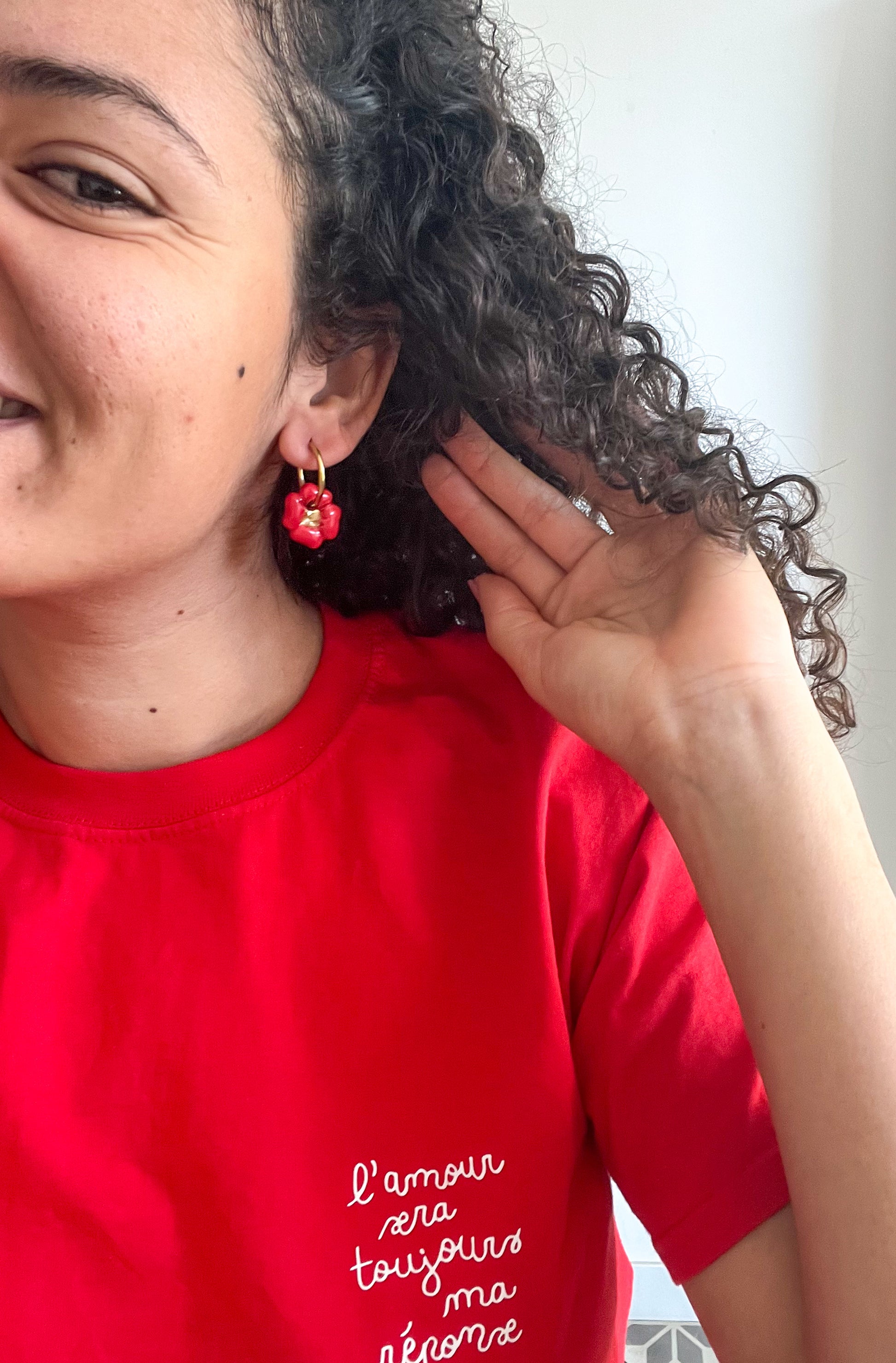 Boucles d’oreilles en forme de coquelicot, décorées d'un cœur en or ❤️