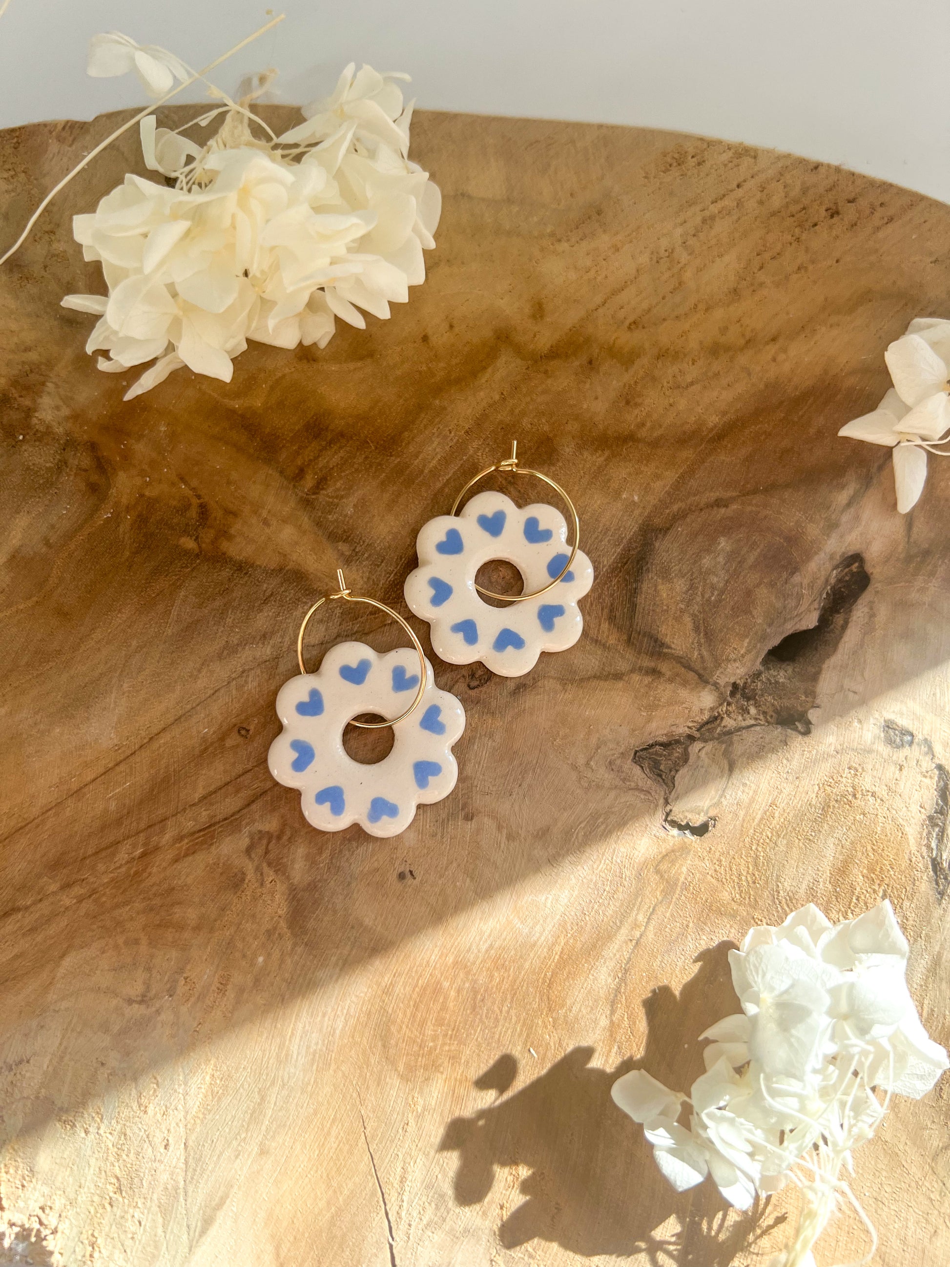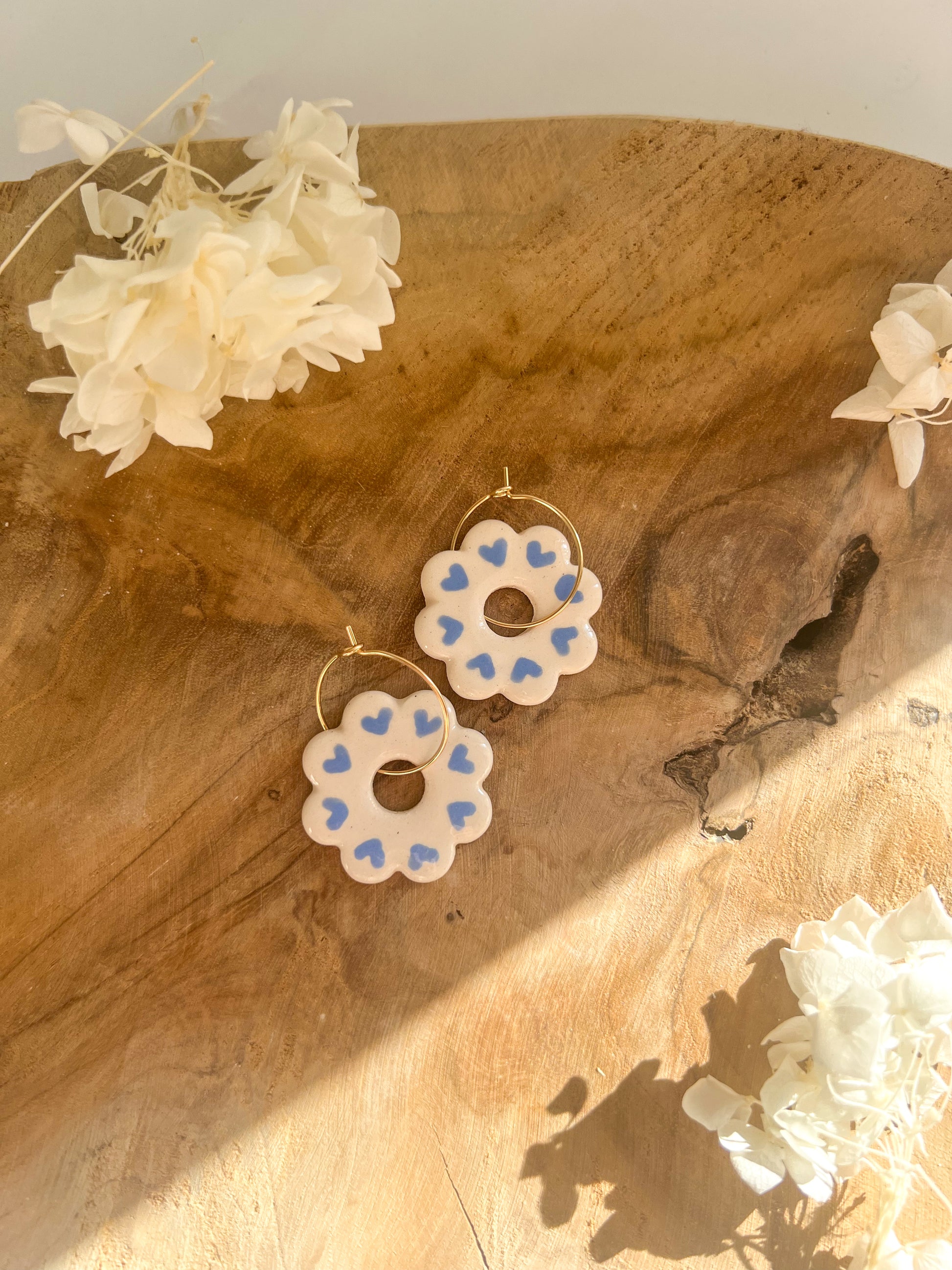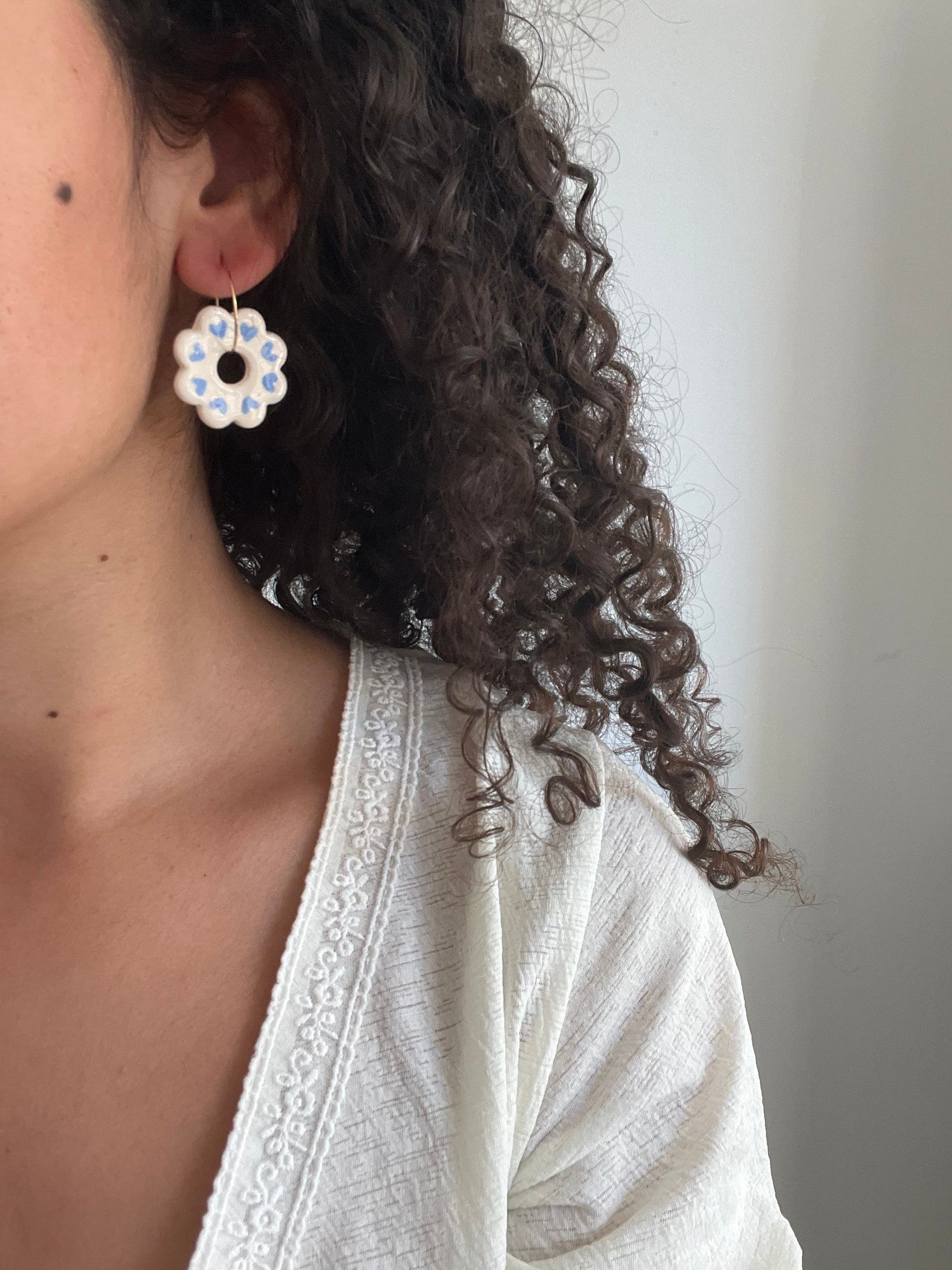 Boucles d’oreilles en forme de fleur, décorées de petits cœurs ❤️