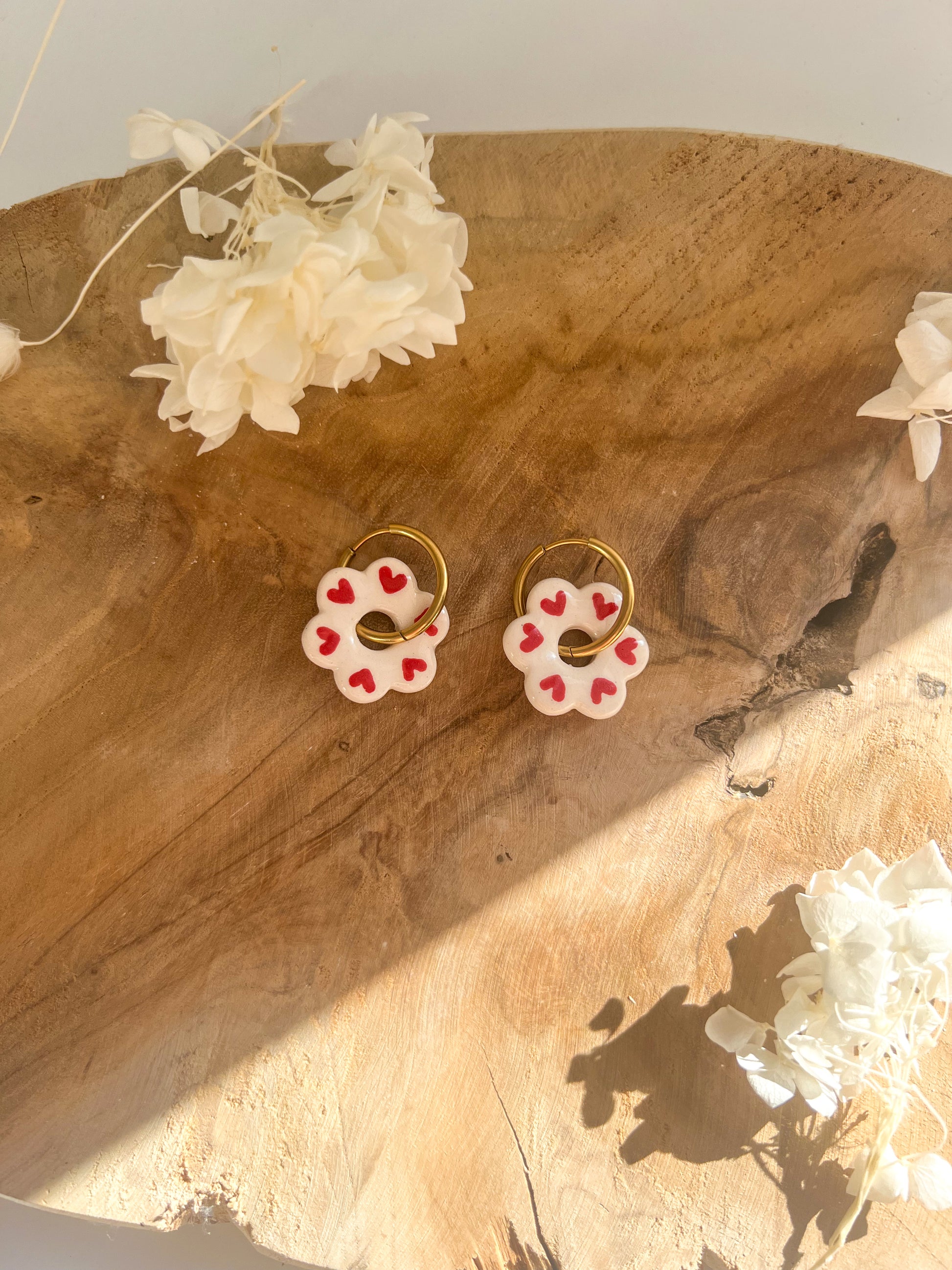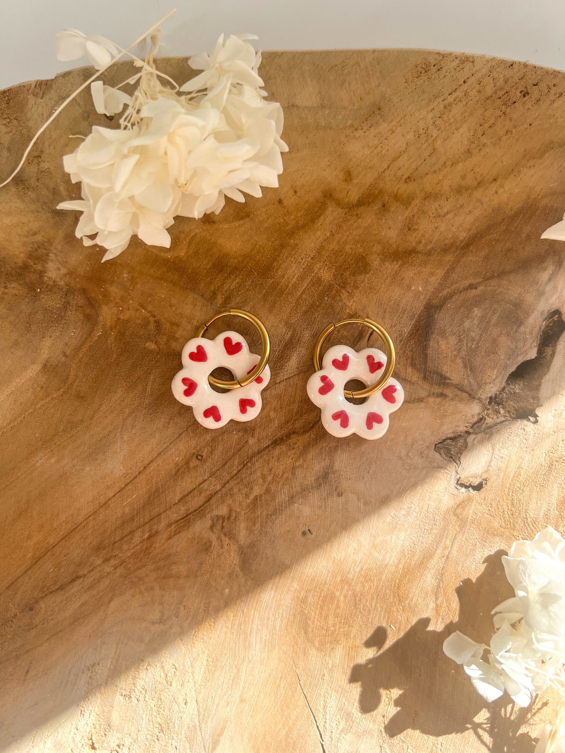Boucles d’oreilles en forme de fleur, décorées de petits cœurs ❤️