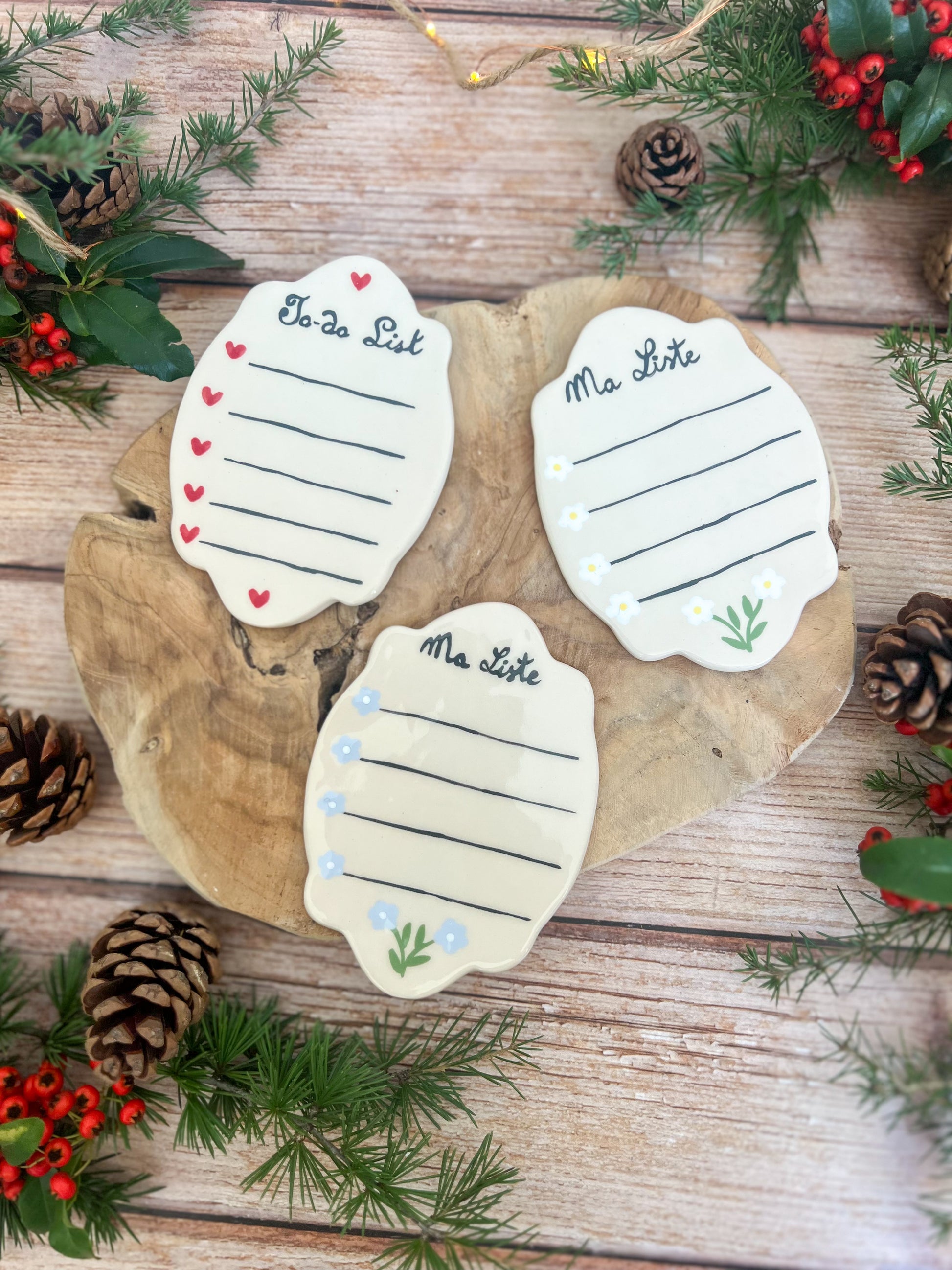 Petite to do list aimantée à poser sur le frigo, décorée de petites fleurs peintes à la main 🌸