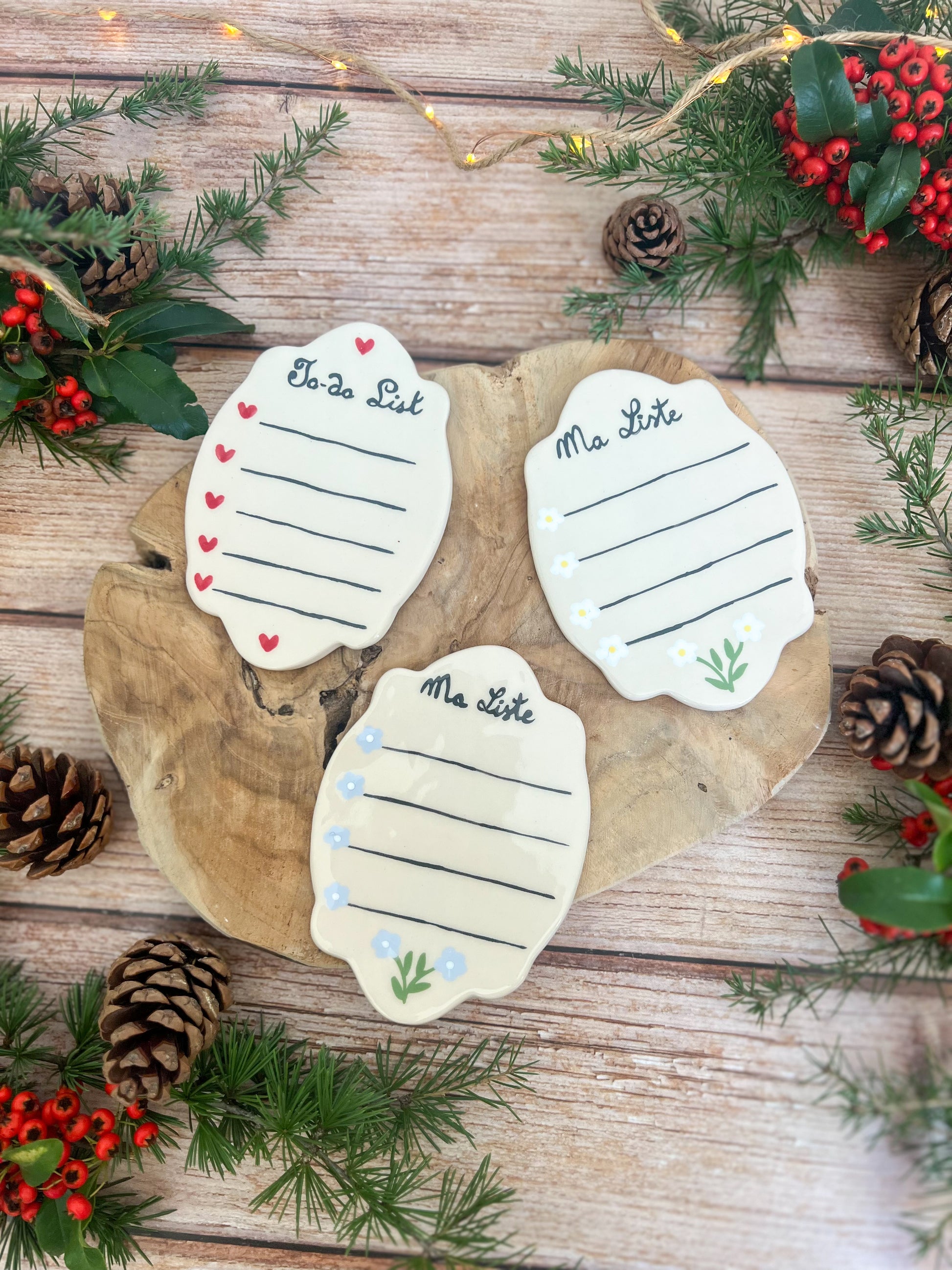 Petite to do list aimantée à poser sur le frigo, décorée de petites fleurs peintes à la main 🌸