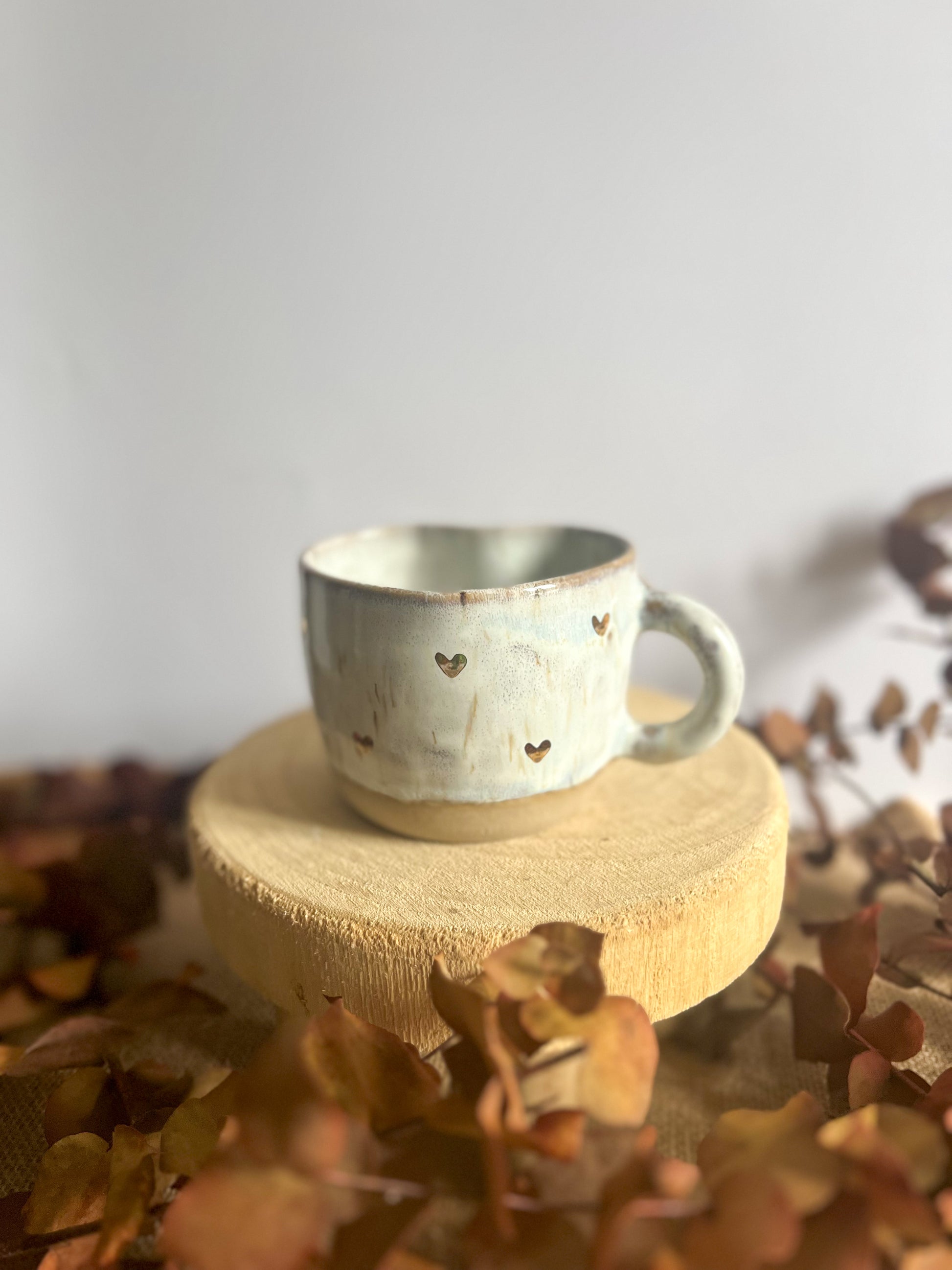 Ce mug en grès, façonné à la main, est idéal pour savourer un grand café, un thé ou toute boisson chaude généreuse.