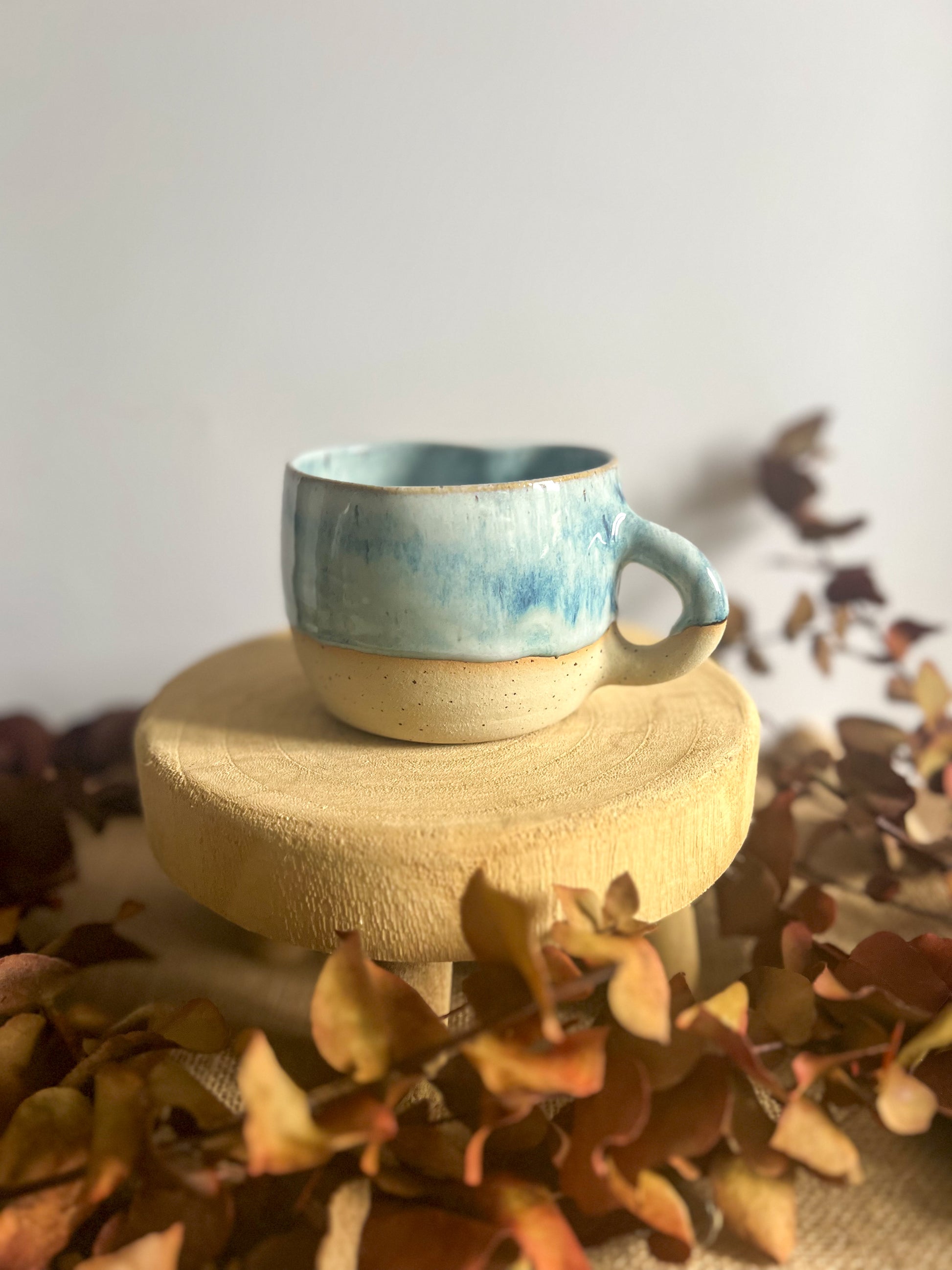 Ce mug en grès, façonné à la main, est idéal pour savourer un grand café, un thé ou toute boisson chaude généreuse.