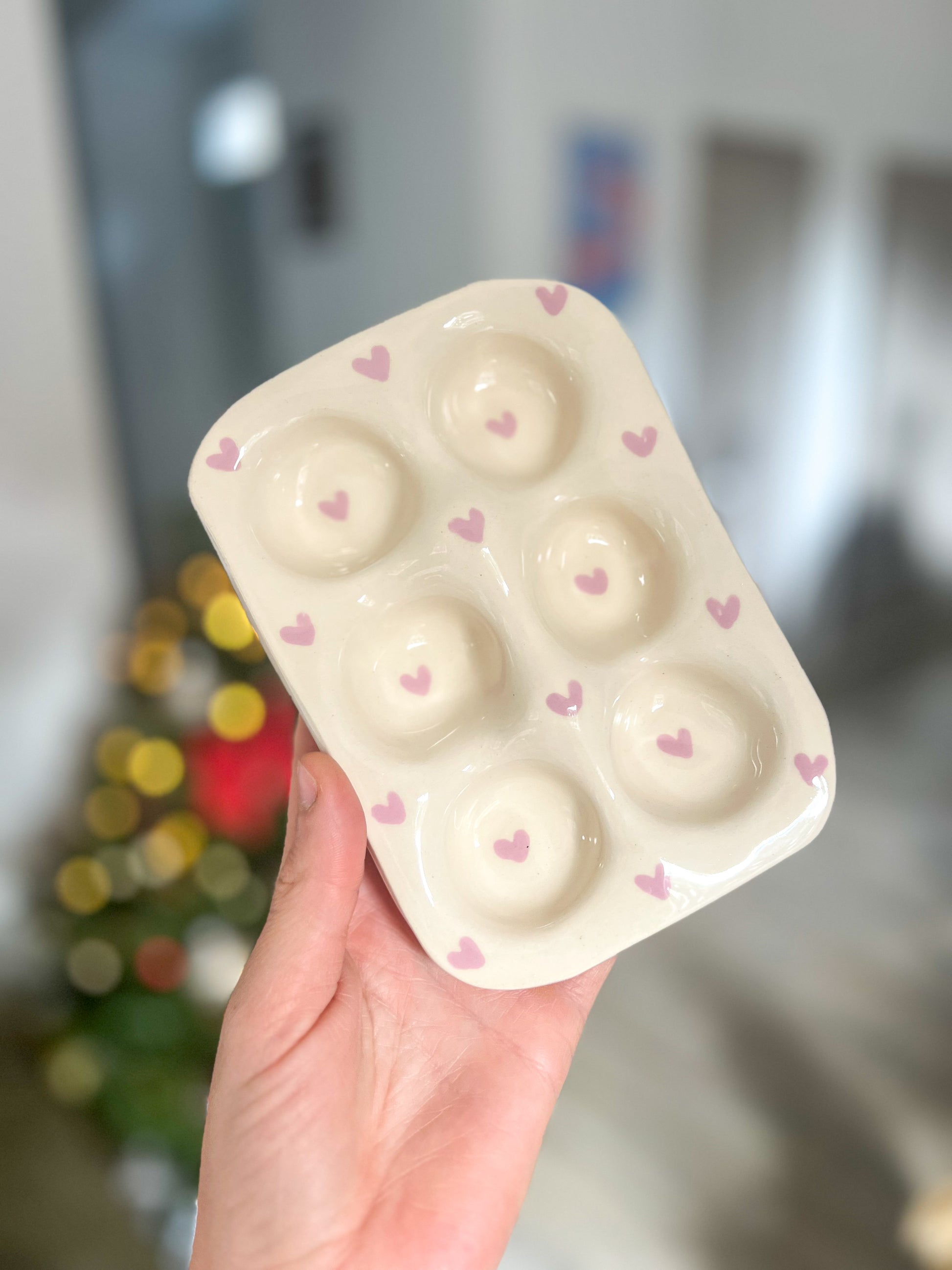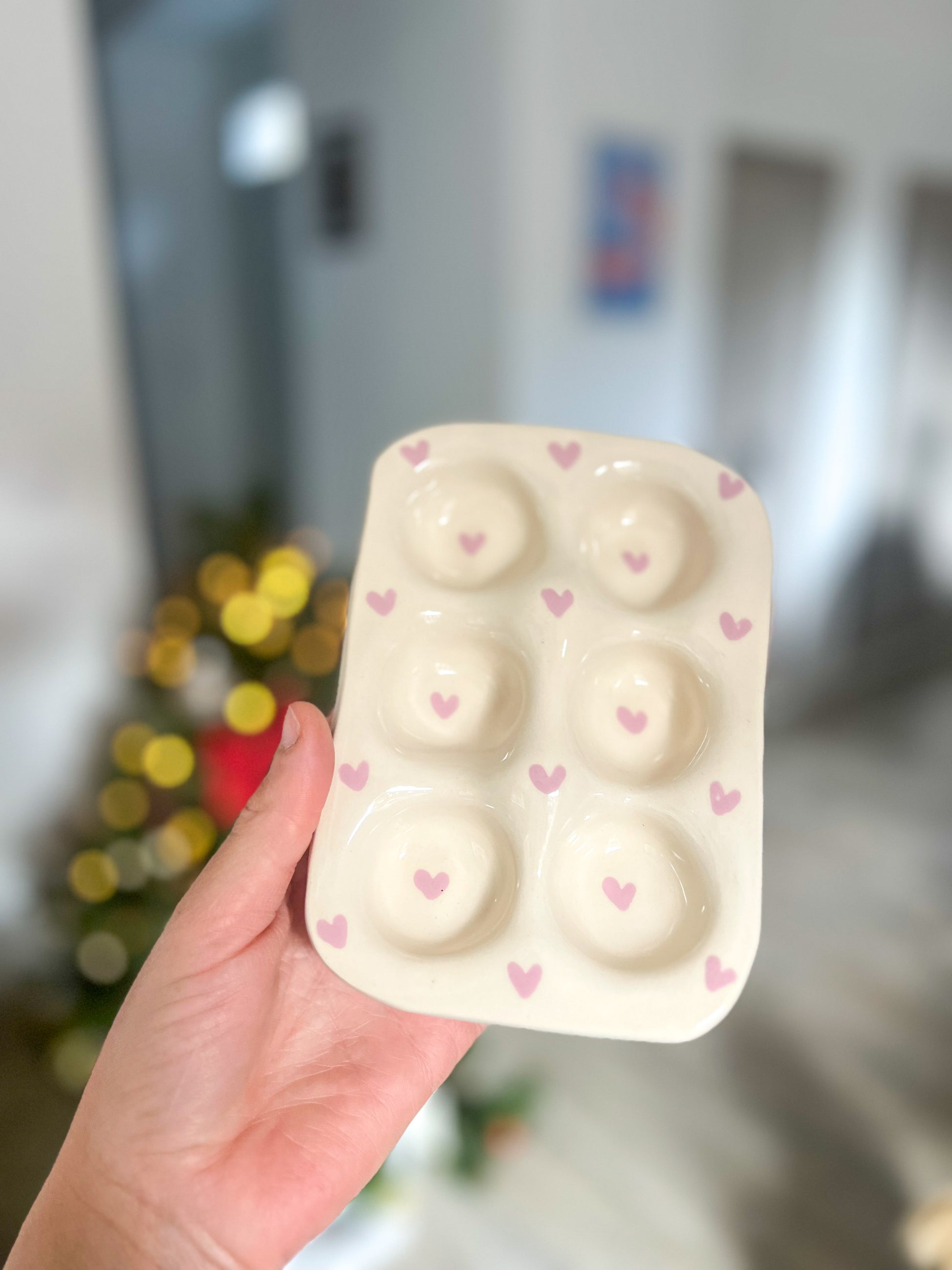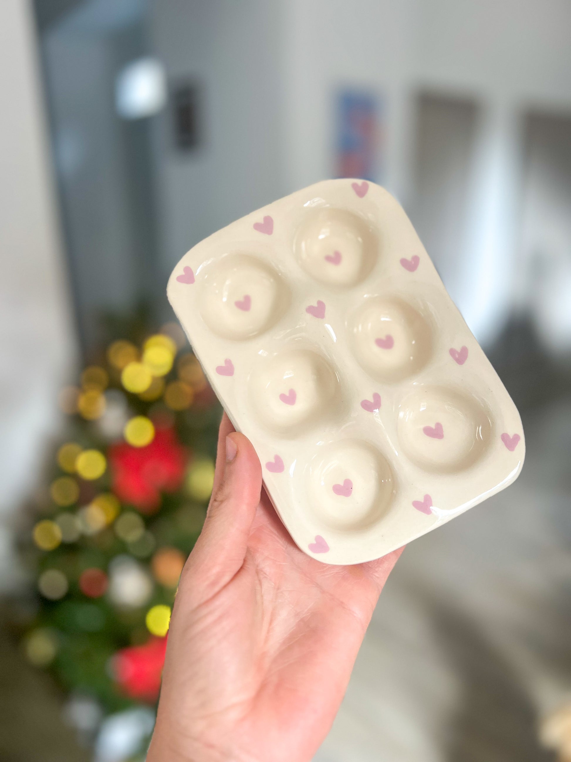 Apportez une touche de charme rustique à votre cuisine avec ce support à œufs en céramique, à la fois pratique et décoratif. Son design doux, sublimé par de petits cœurs peints à la main, en fait un véritable objet d’exception.