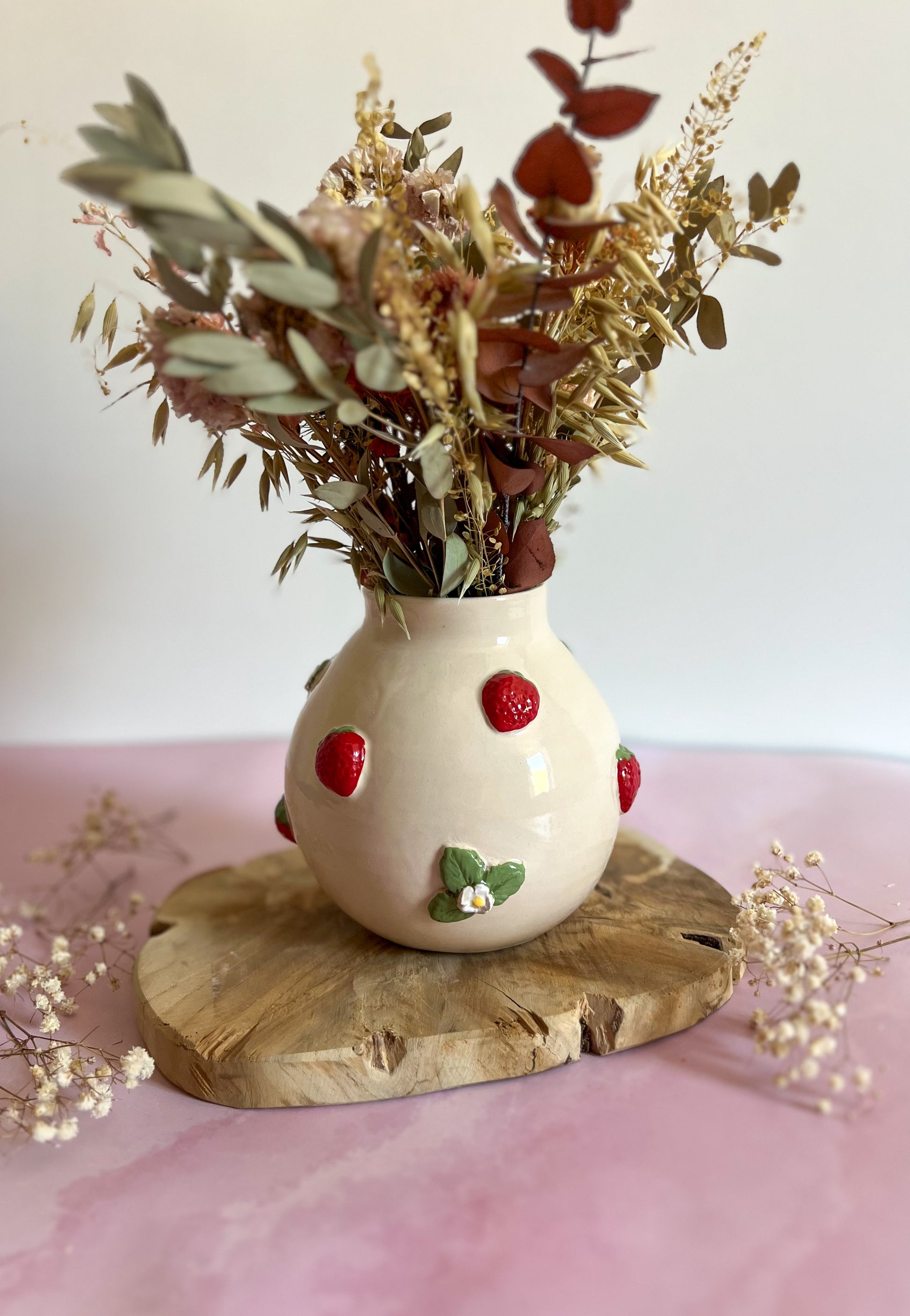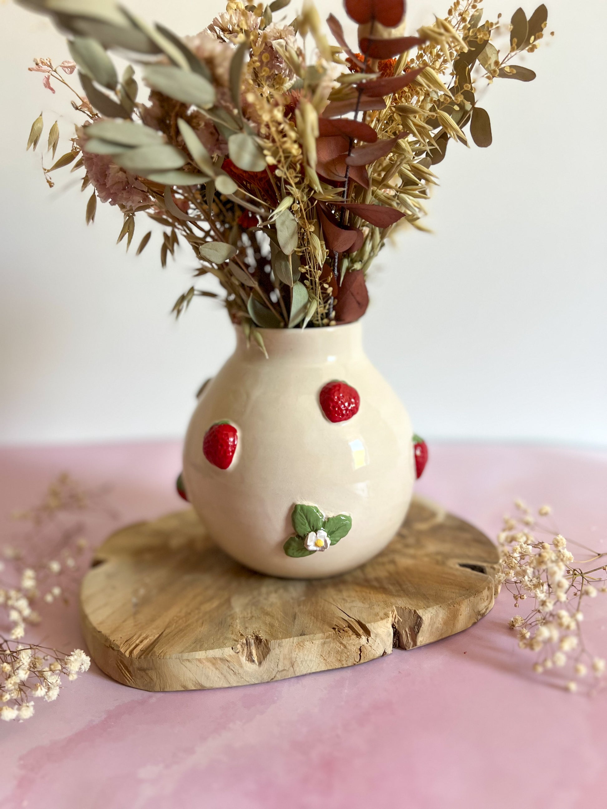 🍓 Vase rond fraises – pièce unique en céramique 🌿